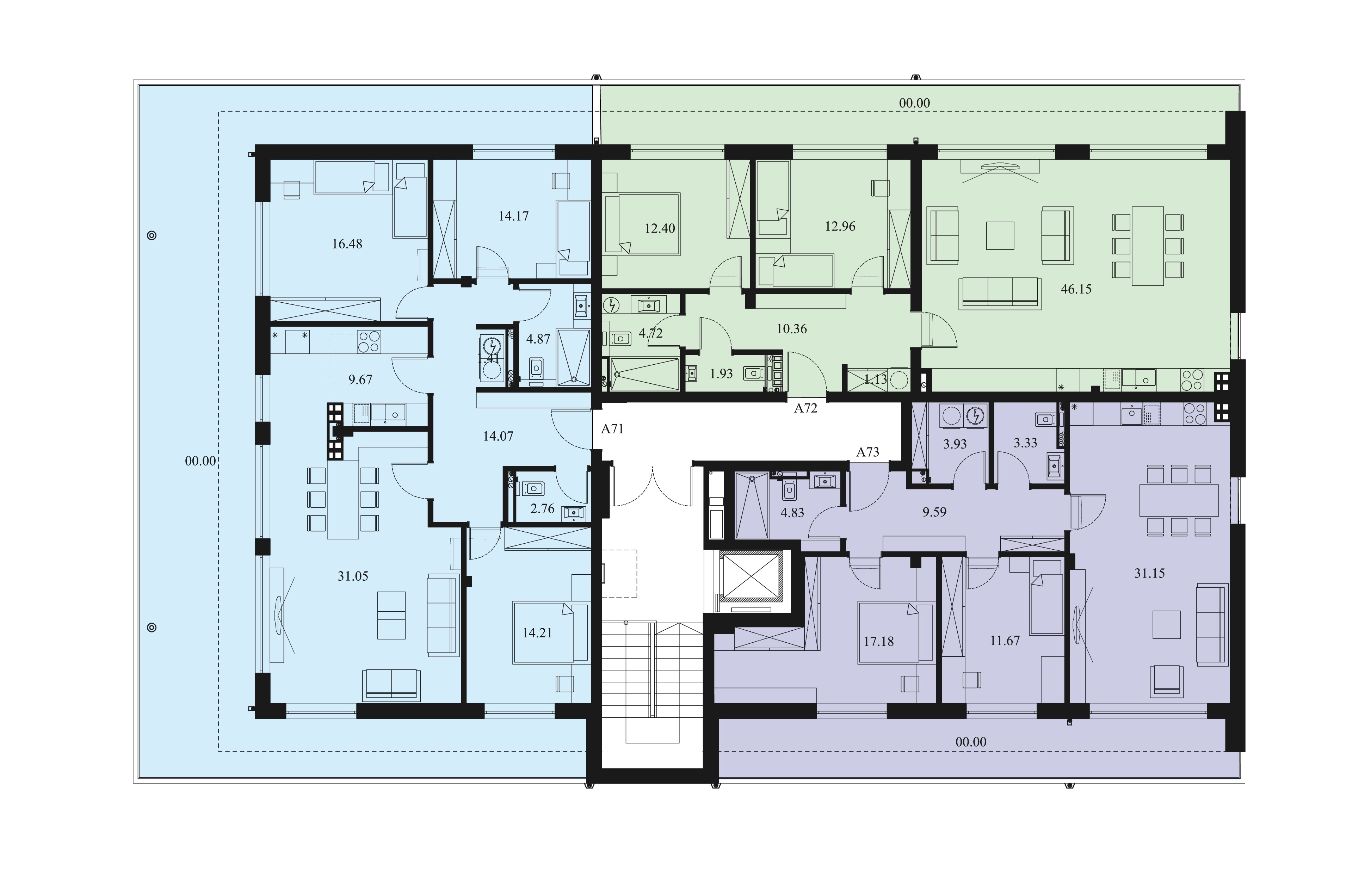Апартамент 71 – с три спални, изложение Югоизток-Югозапад