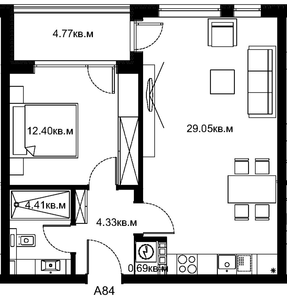 Апартамент 84 – с една спалня (с боя и монтирани климатици)