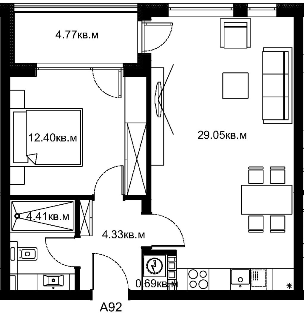 Апартамент 92 – с една спалня (с боя и монтирани климатици)