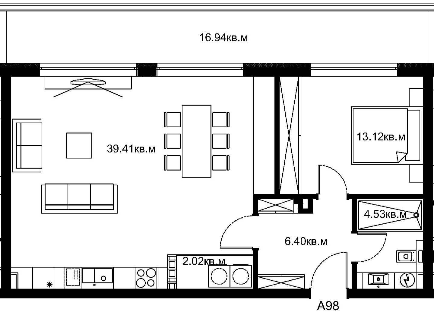 Апартамент 98 – с една спалня (с боя и монтирани климатици)